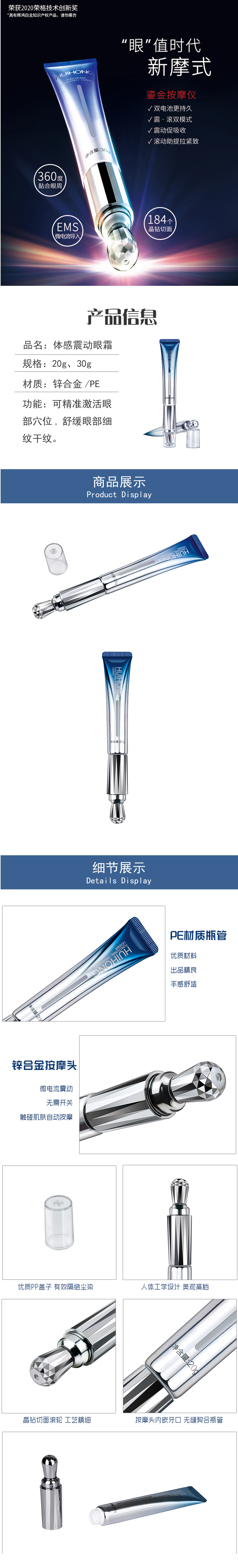 工藝設計特點: 104個晶鉆切面滾輪按摩/顏色可定制/軟管真空瓶可定制