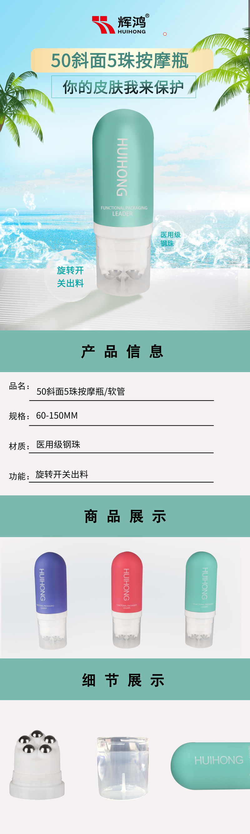 斜面5珠按摩瓶/軟管